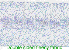 fleecy fabrics, the fleece yarn fibres become entangled and indistinguishable