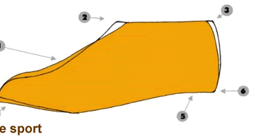 la cambrure, la partie arrière, la largeur de talon et la largeur