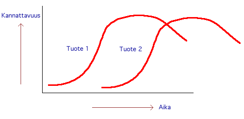 Tuotteen elämänkaarta kuvaavasta kaaviosta näkee, mikä