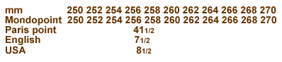 (UK 7 1/2 = US 8 1/2 = EUR 41 1/2 = mm 257)